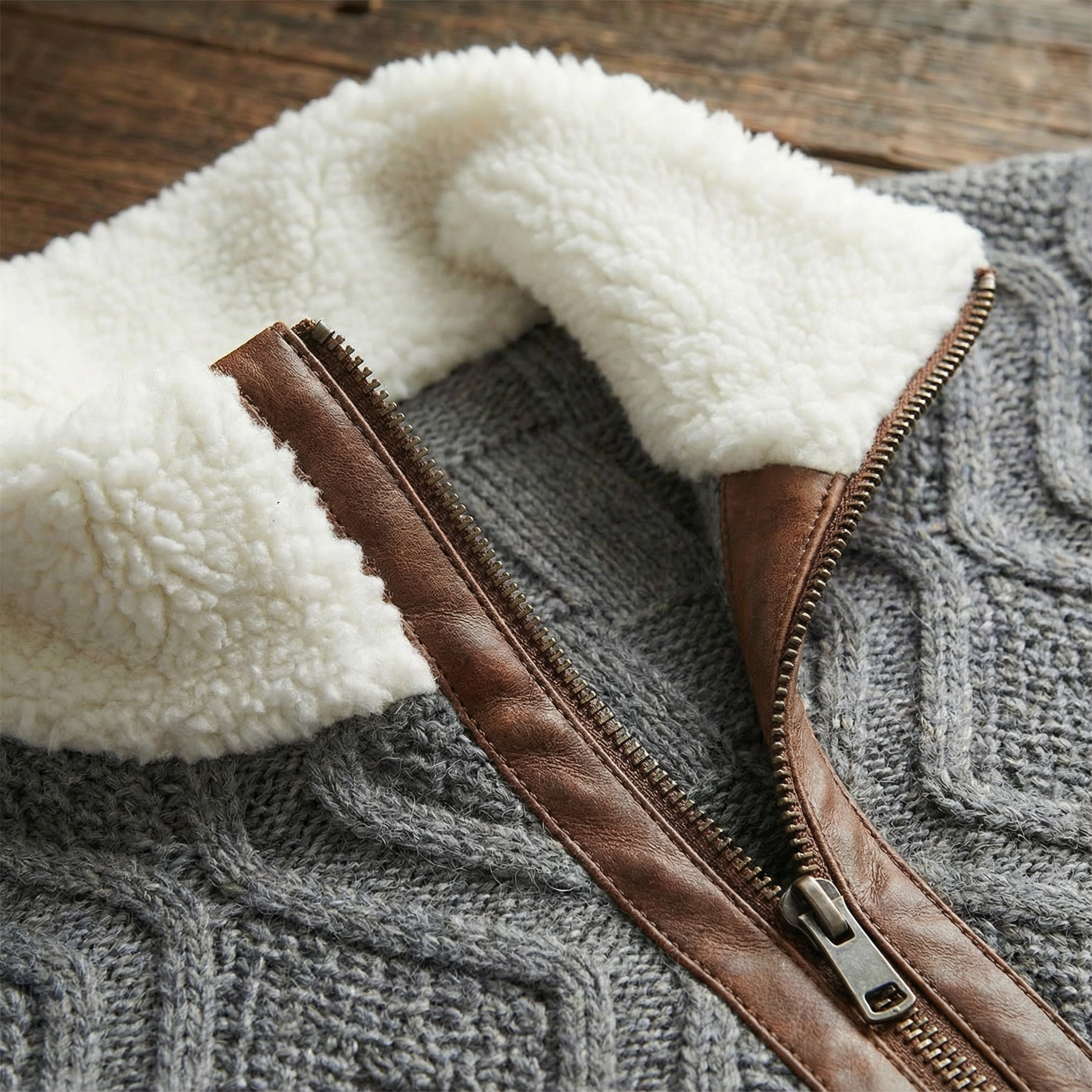 Detalii Premium: Inserțiile din piele la coate și fermoar oferă un look robust, elegant și "scump".