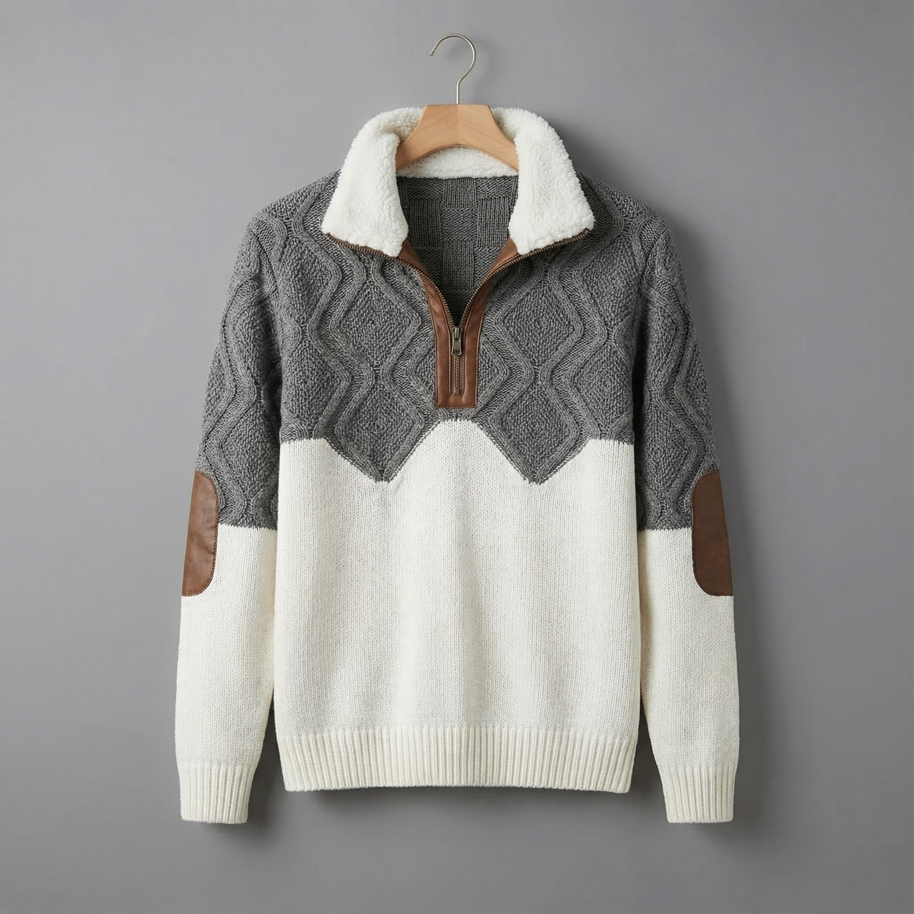 Puloverul Adam este definiția confortului rafinat. Cu un design tricotat geometric și accente distinctive, această piesă îți oferă căldura de care ai nevoie fără să sacrifici stilul masculin. Este haina pe care vei vrea să o porți zi de zi.