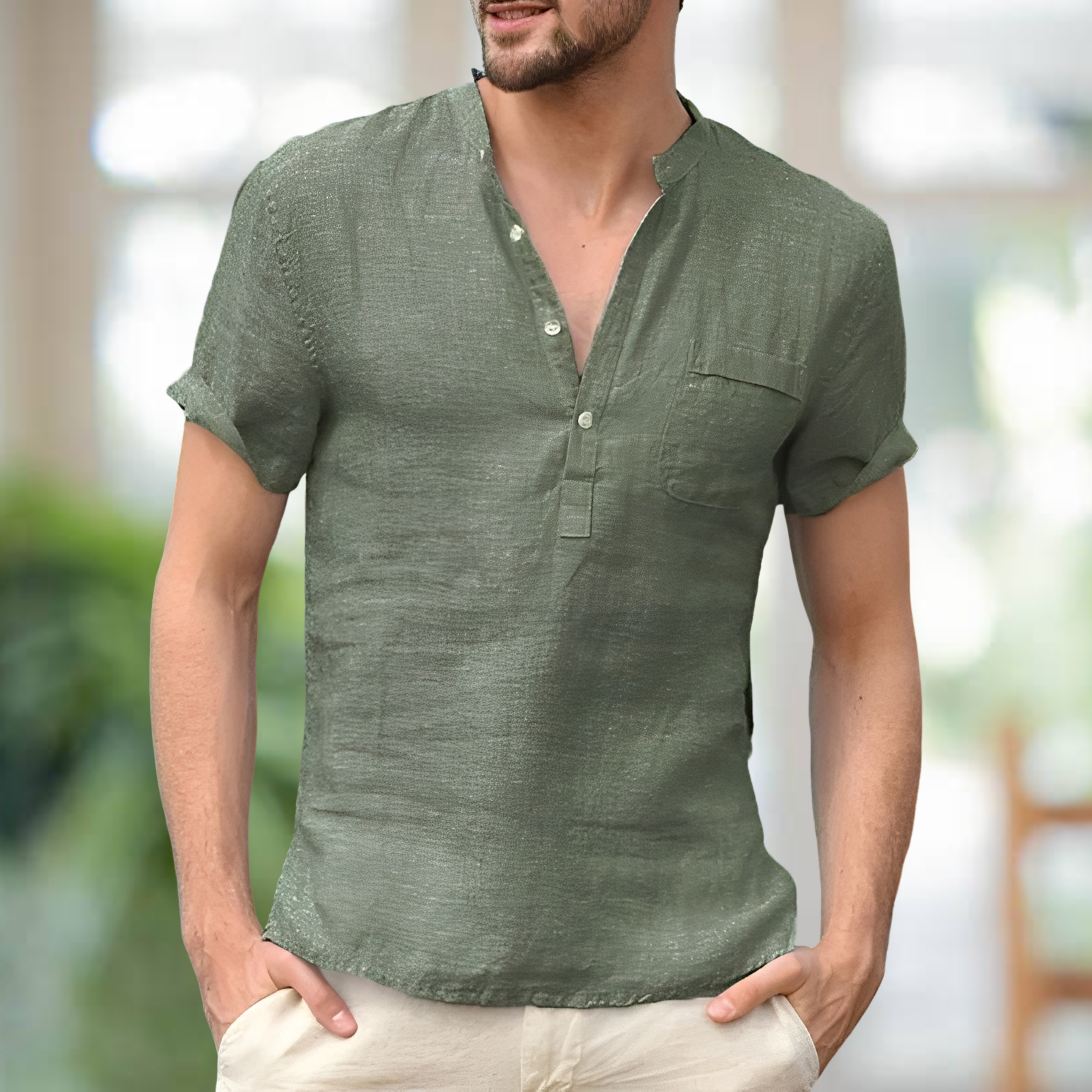 Cămașa cu mânecă scurtă din in pur este perfectă pentru zilele calde. Materialul ușor și bine aerisit asigură un confort sporit, în timp ce croiala lejeră oferă libertate de mișcare. Indiferent dacă sunteți în vacanță, la plajă sau în oraș, această cămașă vă oferă un look relaxat și stilat.