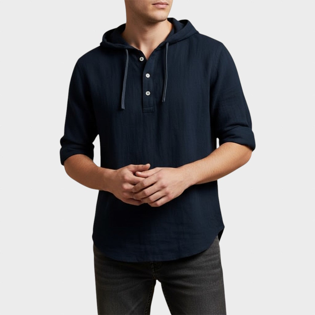 Descoperă o piesă vestimentară creată pentru bărbatul modern: Vasile – Cămașă de lux, combinația perfectă dintre rafinament și confort. Designul său cu glugă și nasturi adaugă un aer sofisticat, menținând în același timp lejeritatea ideală pentru purtare zilnică.