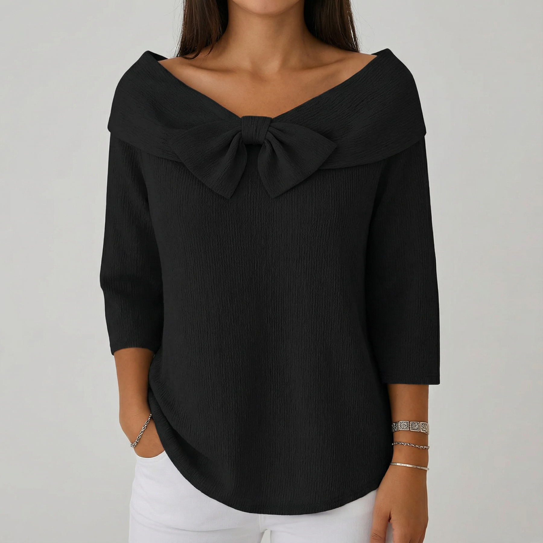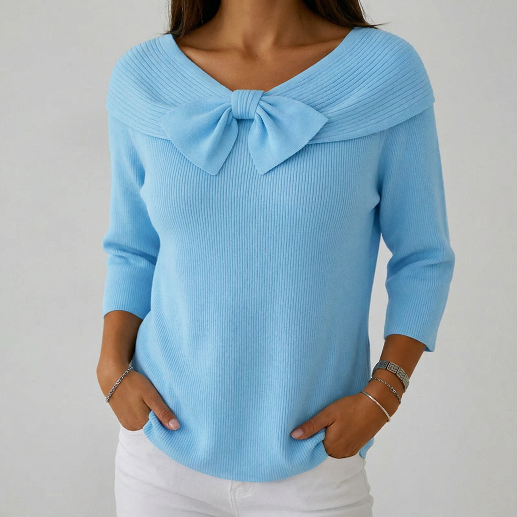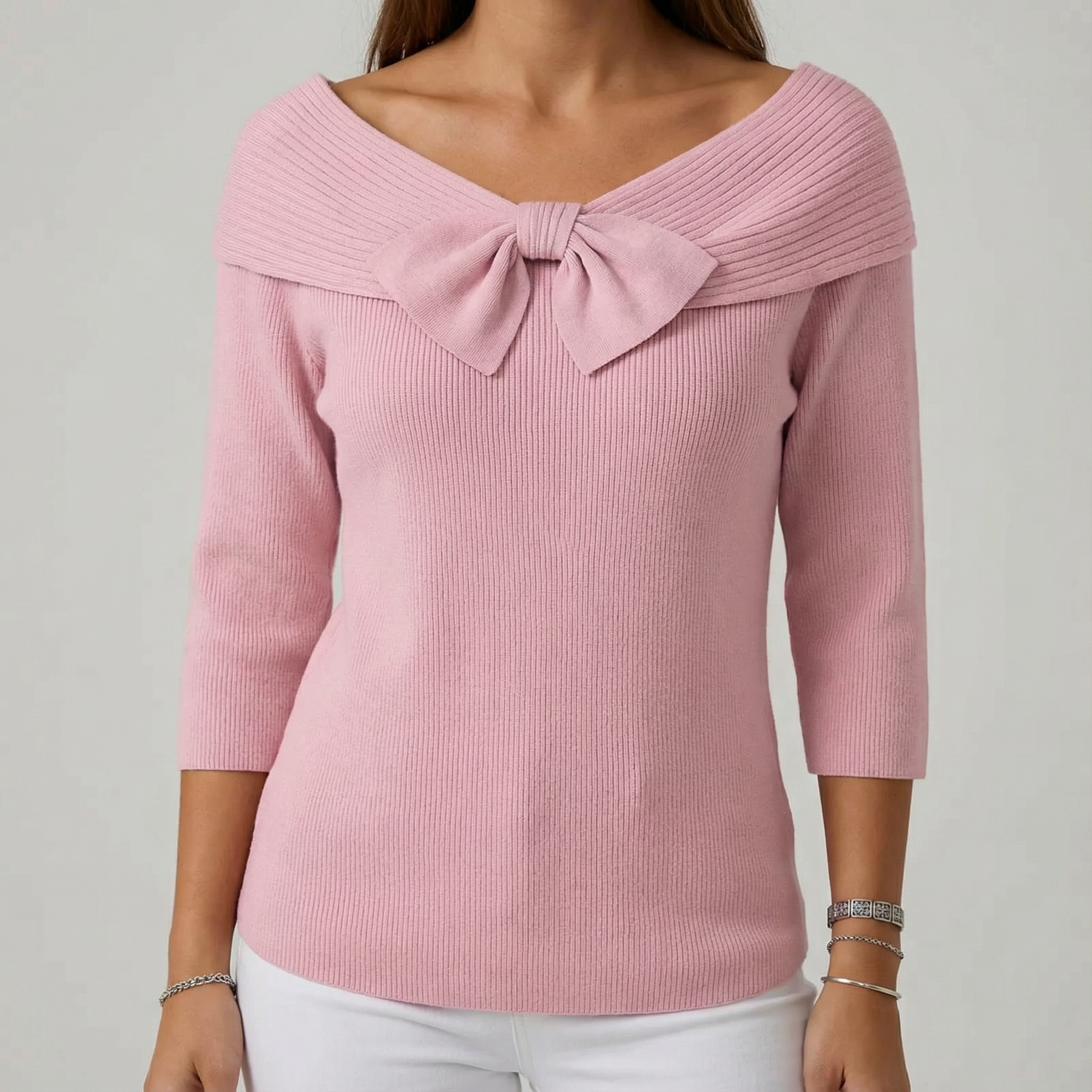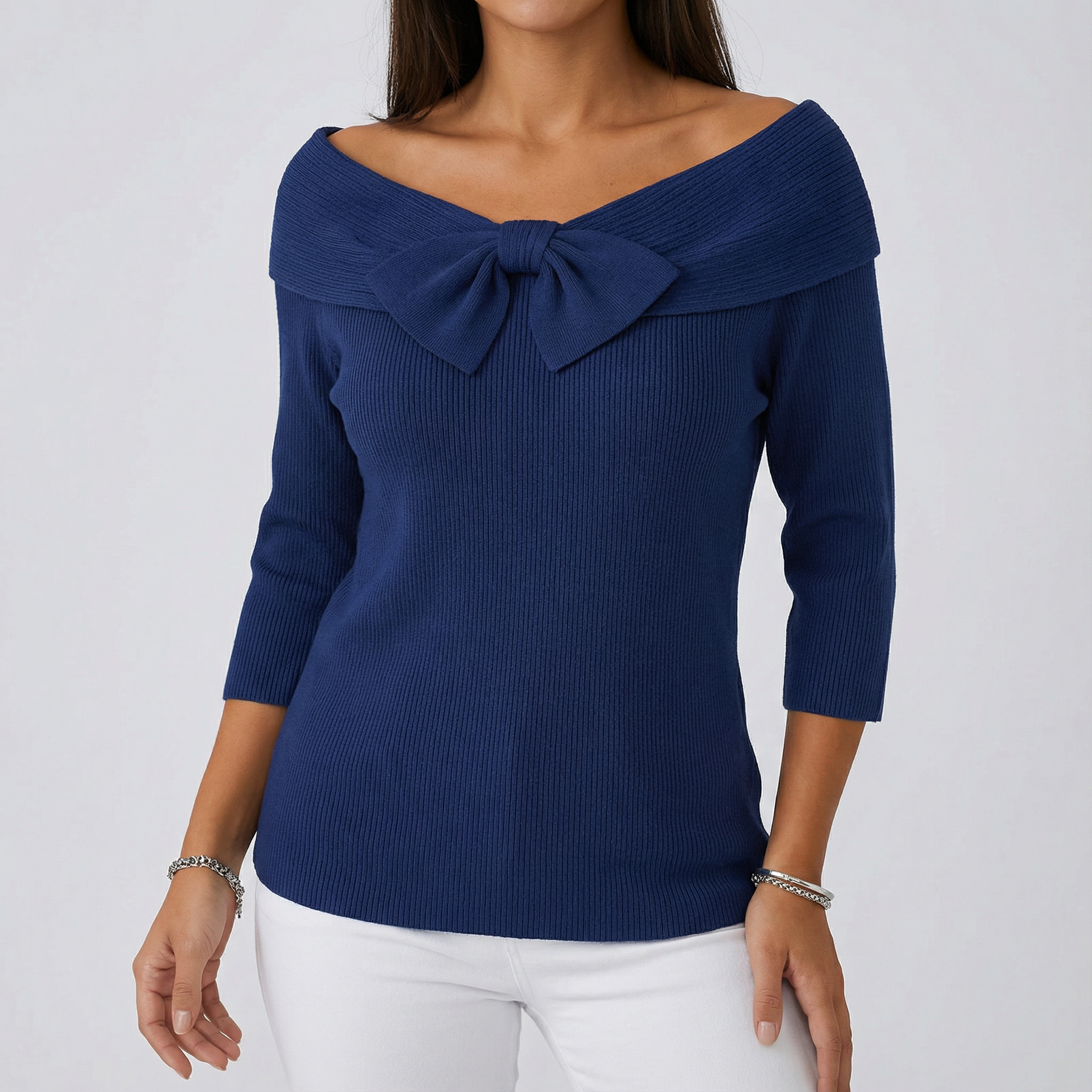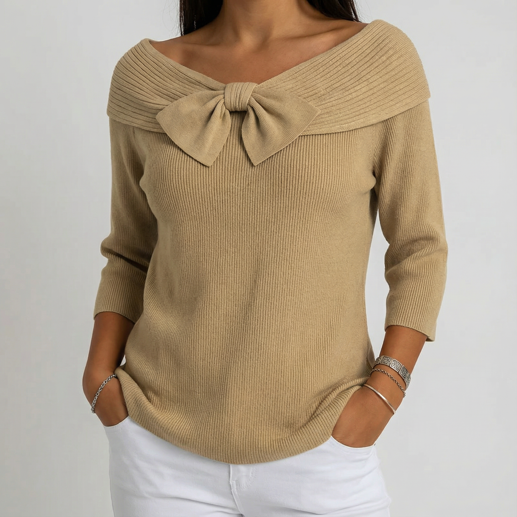 Eleganță Atemporală: Puloverul cu Decolteu Bardot și Detaliu Feminin