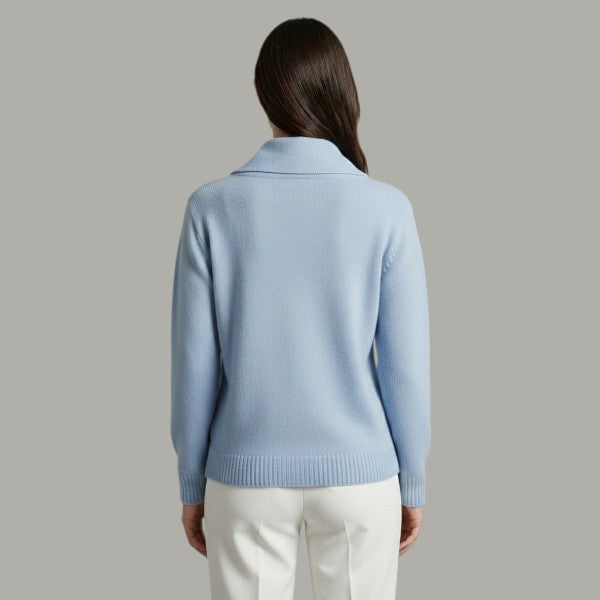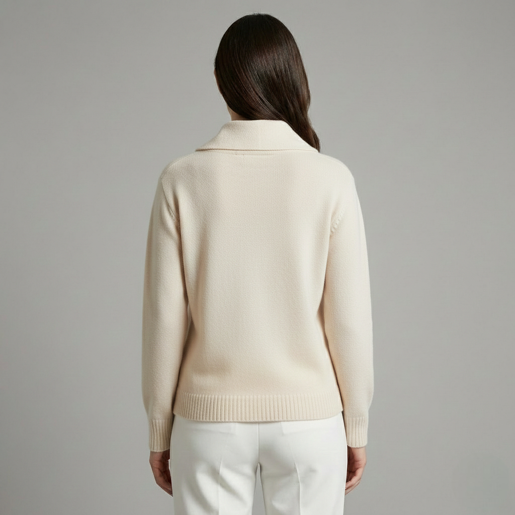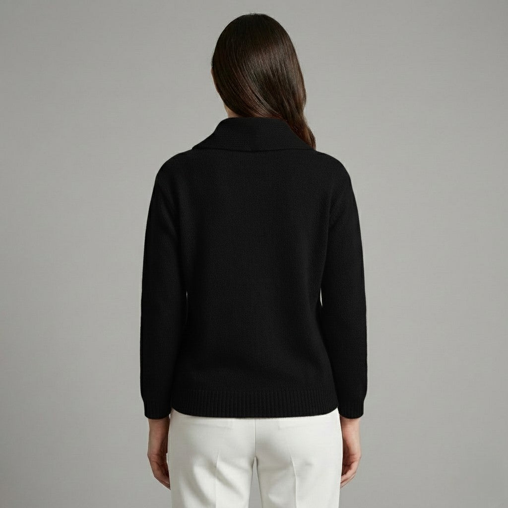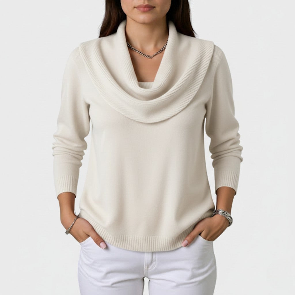 Un pulover elegant și confortabil, cu un guler drapat care adaugă o notă sofisticată și feminină ținutei tale. Țesătura moale se mulează frumos pe corp, oferind o cădere perfectă pentru orice ocazie — fie la birou, fie într-un look casual-chic.