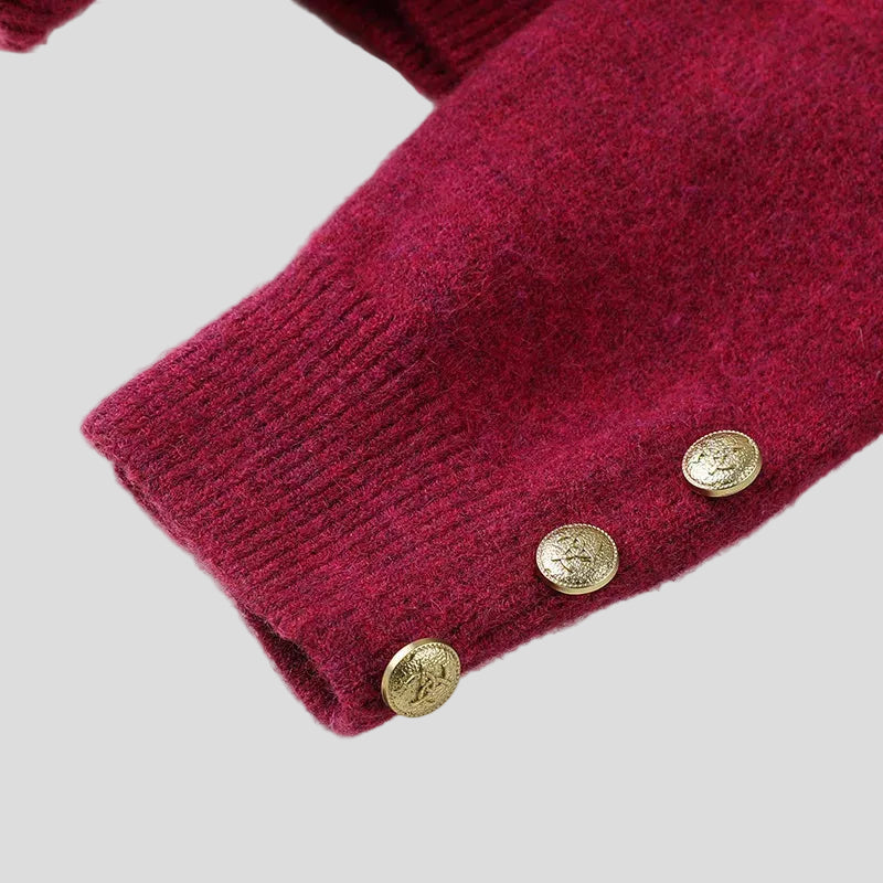Detalii de Lux: Nasturii decorativi de la manșete adaugă un plus de rafinament și strălucire discretă, transformând puloverul într-o piesă potrivită pentru ocazii speciale.