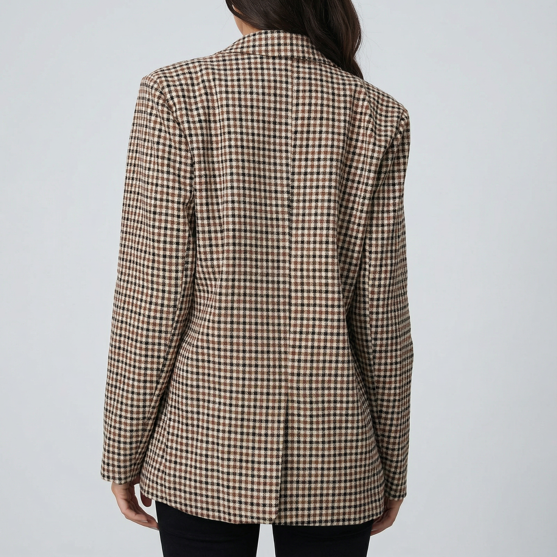 Estetică Atemporală: Modelul mărunt în carouri și textura materialului oferă un aer vintage autentic, amintind de calitatea croitoriei de altădată, un detaliu care denotă întotdeauna clasă.