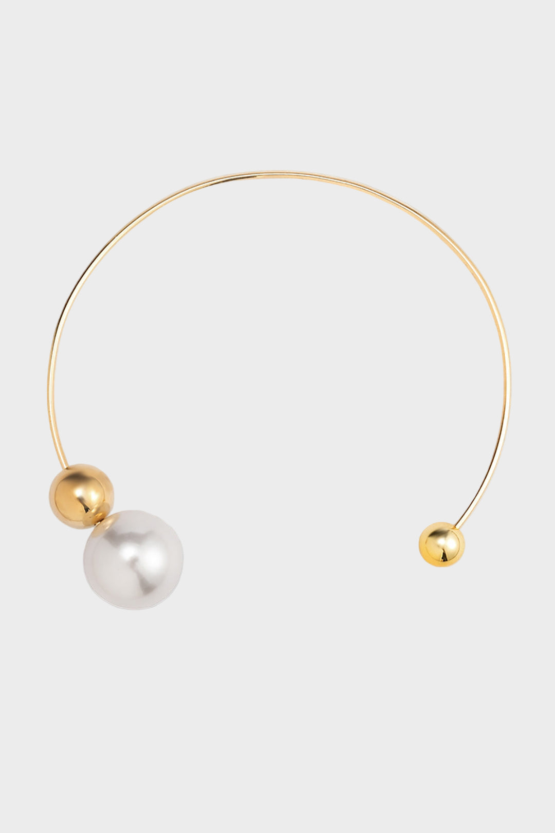Colierul „Alina” redefinește rafinamentul prin contrastul perfect dintre metalul strălucitor și perla supradimensionată. Cu un design deschis și linii curate, această piesă modernă adaugă un accent sofisticat oricărei ținute. Ideal pentru femeia care preferă bijuterii simple, dar cu impact vizual puternic.