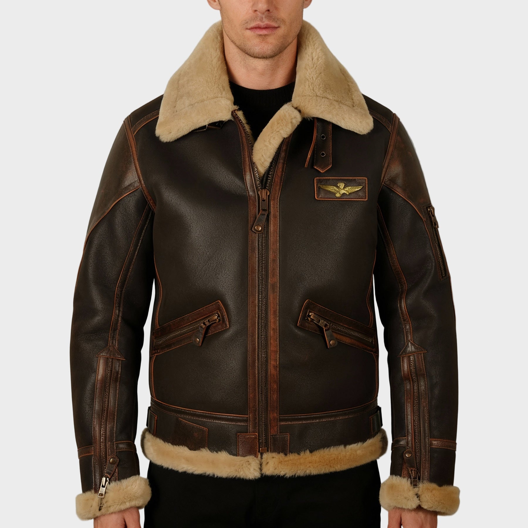 Albert – Jachetă caldă de pilot aduce împreună aerul autentic al aviației clasice și confortul premium de care ai nevoie în zilele reci. Este o piesă impunătoare, cu finisaje de calitate și detalii care îi conferă personalitate. Perfectă pentru cei care vor să impresioneze fără efort, dar și să se simtă protejați de frig.