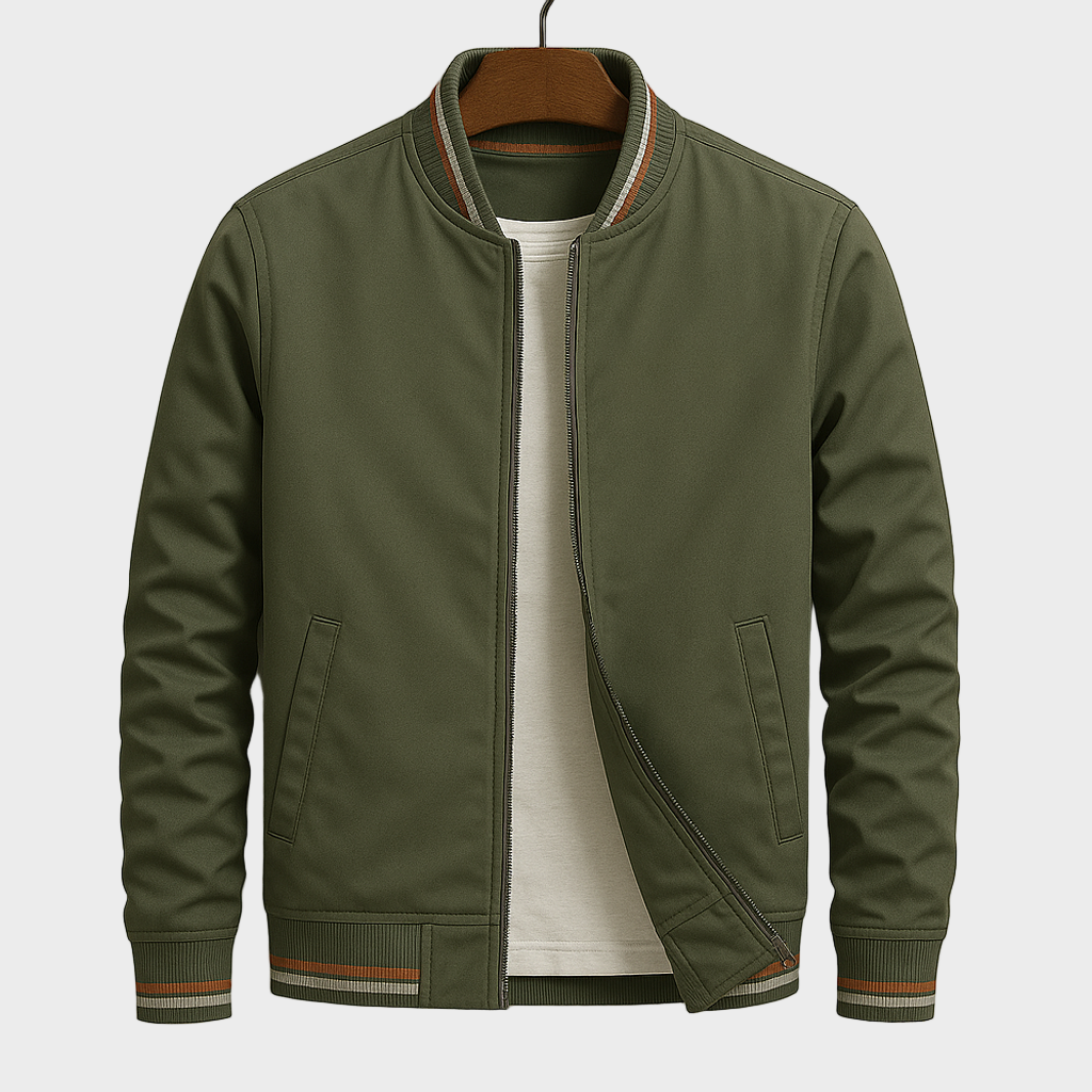 Estetică modernă în stil universitar: Jacheta bomber Gleb îmbină farmecul atemporal al stilului universitar cu o siluetă elegantă și actualizată. Gulerul, manșetele și tivul cu nervuri în dungi adaugă un accent sportiv care o diferențiază. Fie că este asortată cu blugi sau pantaloni de jogging, oferă un finisaj elegant și sigur.