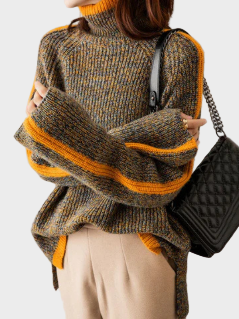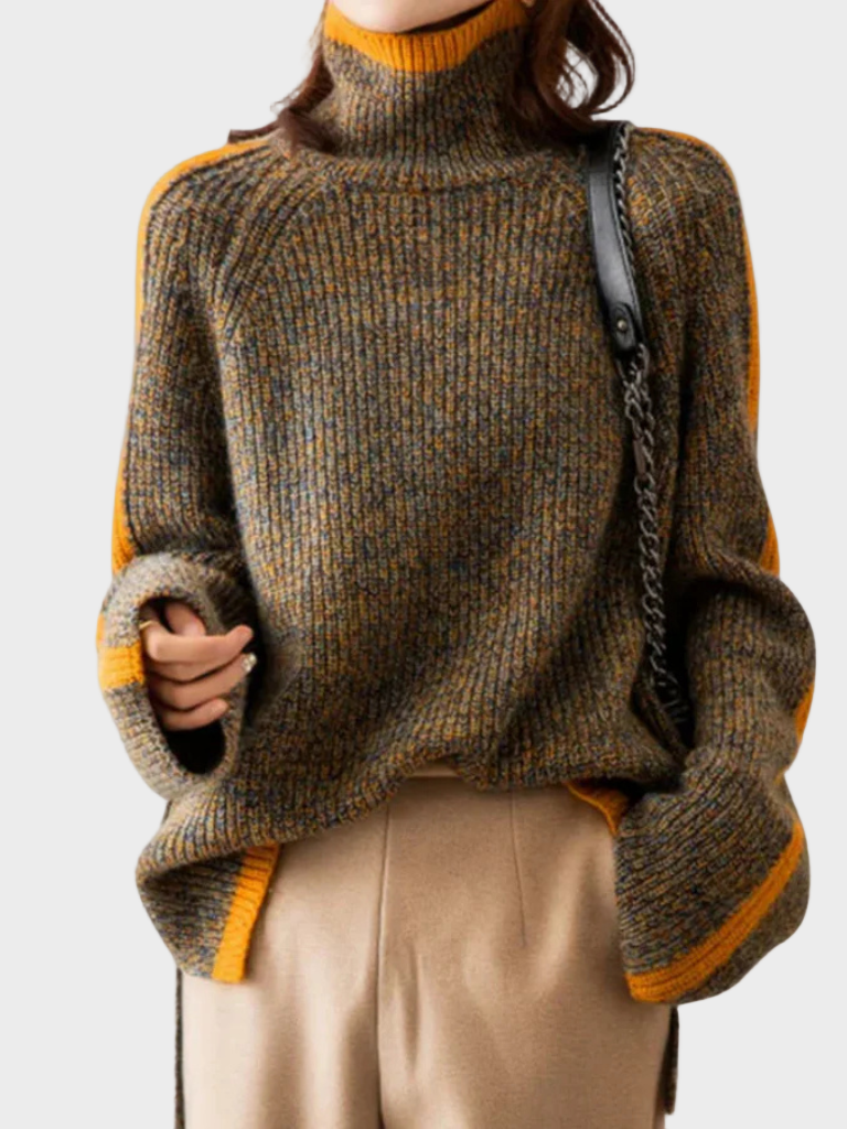 Croiala lejeră a puloverului asigură o pasformă confortabilă, permițând libertate de mișcare. Mâneci lungi și gulerul înalt contribuie la o protecție suplimentară împotriva frigului, în timp ce detaliile contrastante adaugă un plus de rafinament. Fie că alegi să-l porți cu blugi sau cu o fustă elegantă, acest pulover se dovedește a fi un partener versatil în orice situație de zi cu zi.