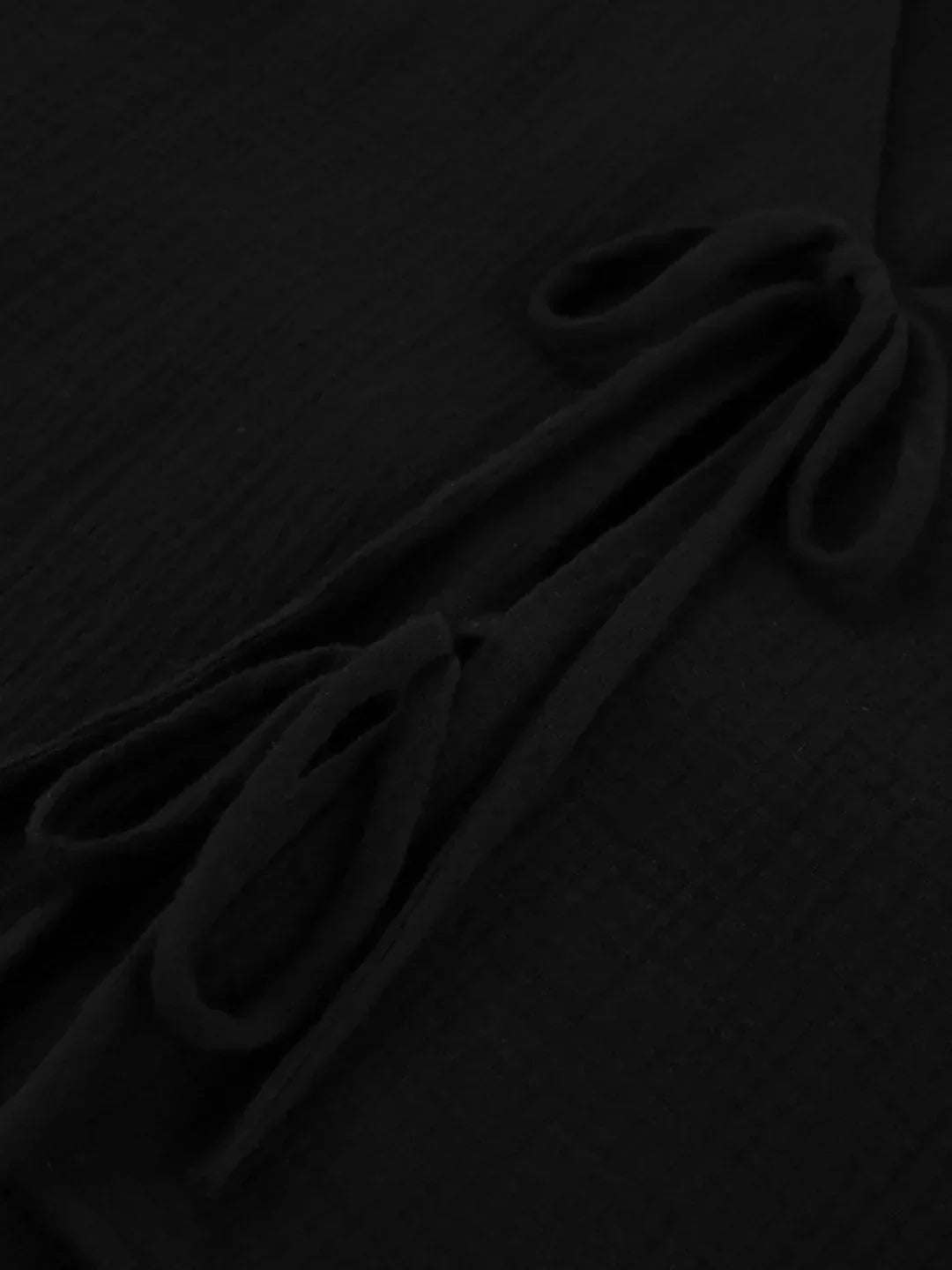 Design: Un set chic format din două piese, cu un top cu mâneci lungi, relaxat, și un detaliu elegant de legătură în față, asociat cu pantaloni scurți cu talie înaltă pentru un look coordonat fără efort. Designul minimalist combină confortul cu eleganța modernă.
